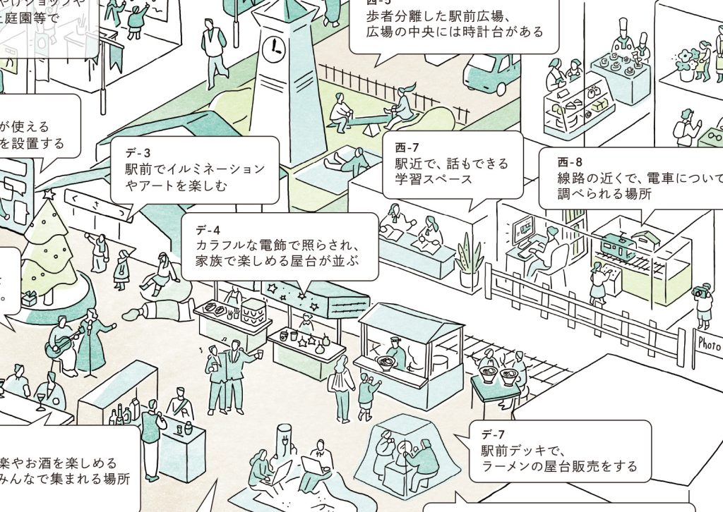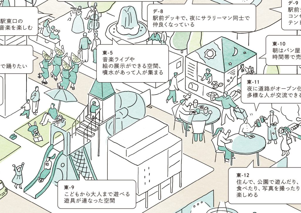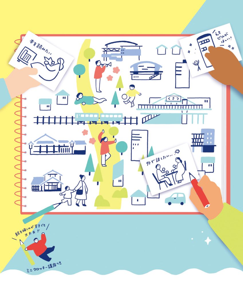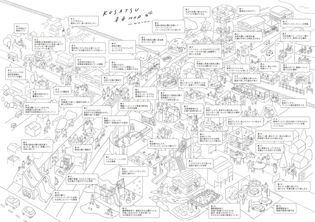 ここに描かれているすべてのことが実現するわけではありませんが、市民のみなさんのこんなことがやってみたい!がいっぱいあつまるMAPが出来上がりました。