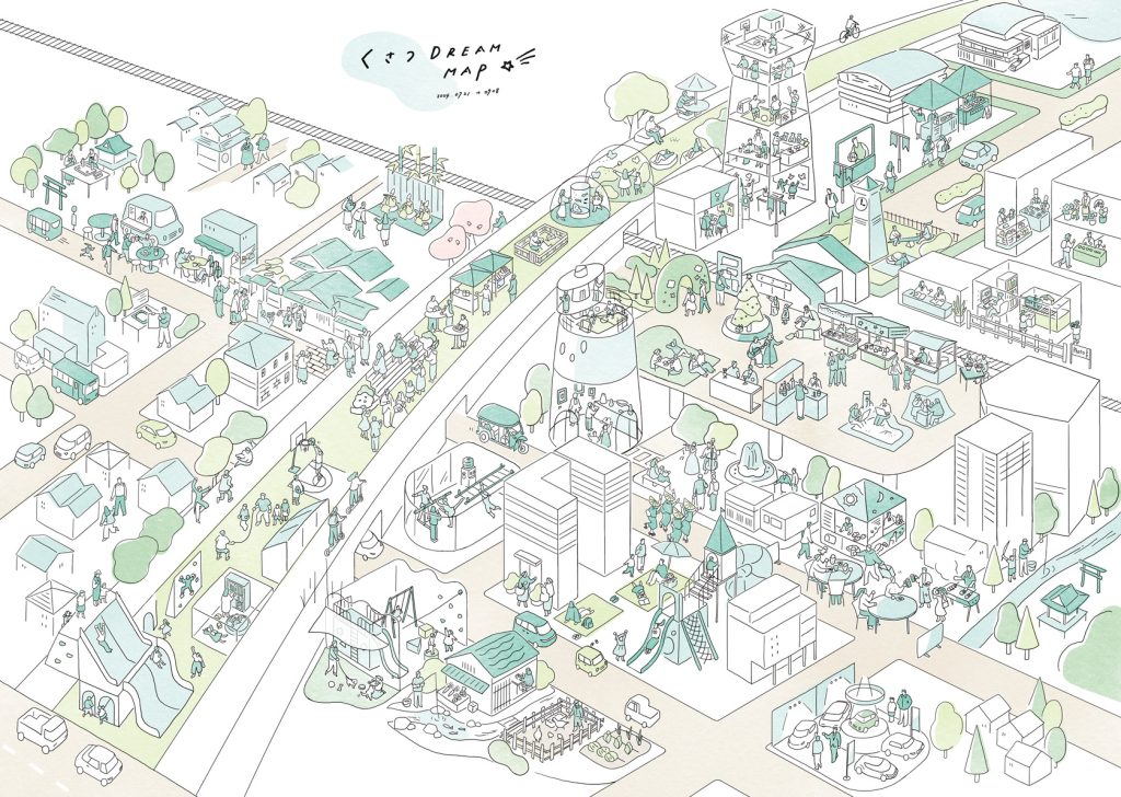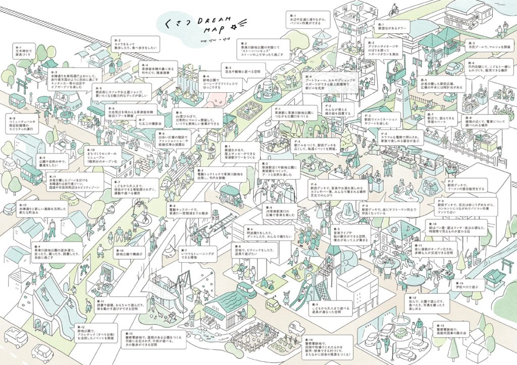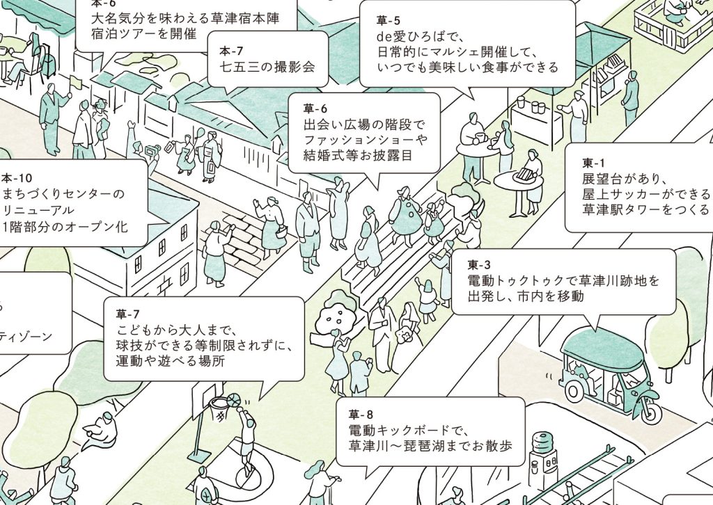 こちらもイラストを担当させていただきました。→草津駅周辺エリア未来ビジョン