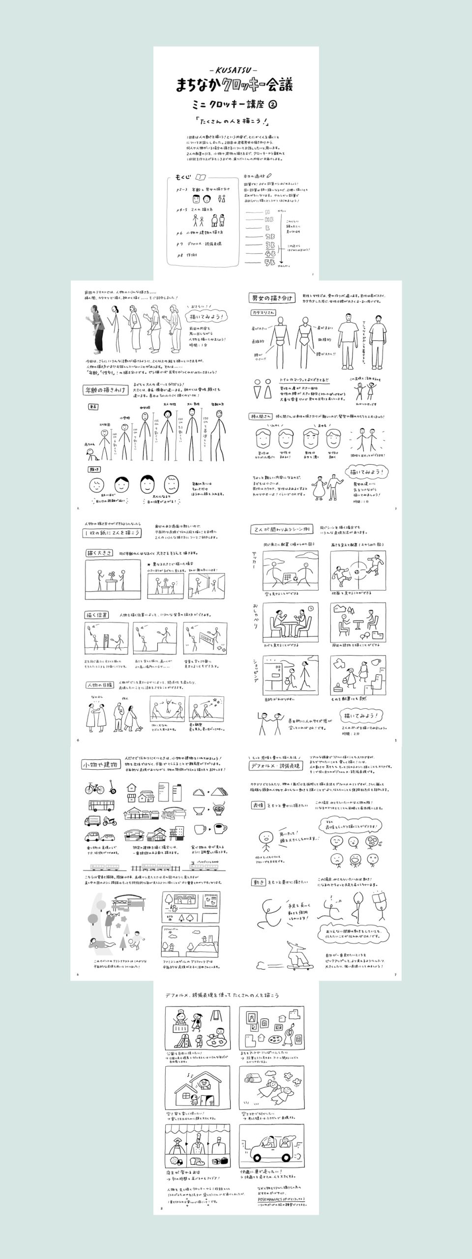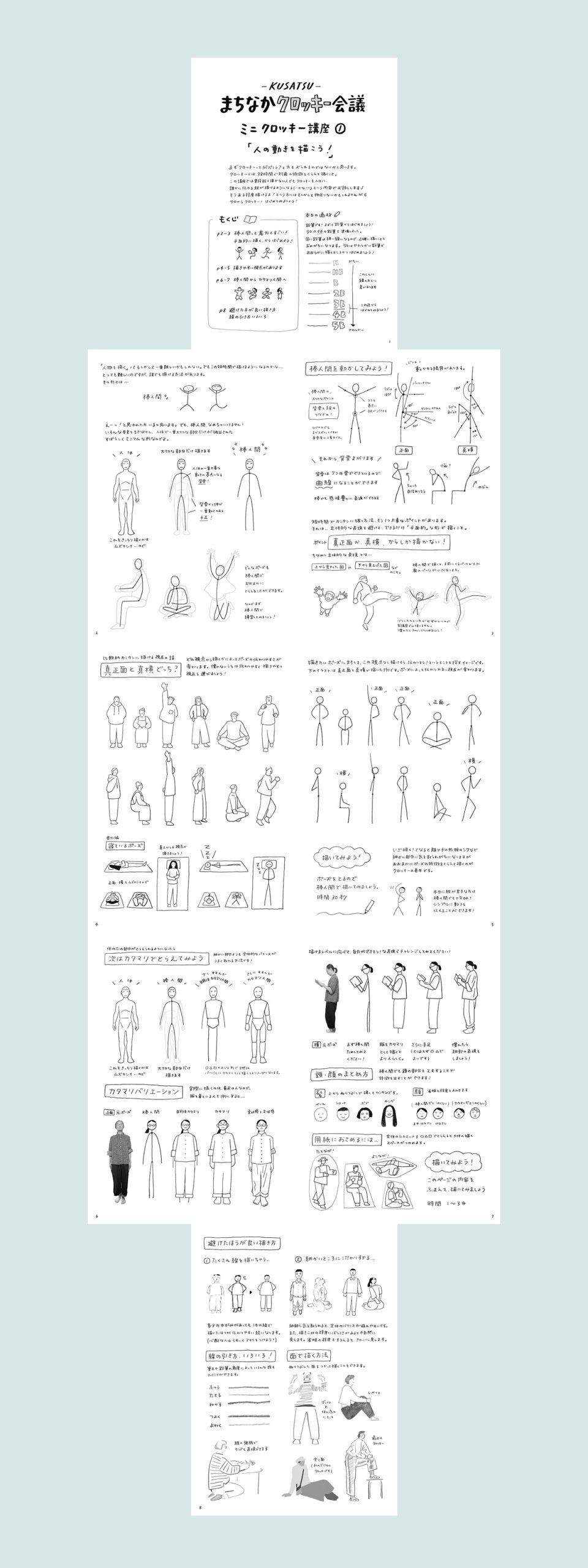 2回目!2回目は人物を老若男女もう少し深く掘り下げること、背景や小物もつけて活動をよりわかりやすく幅広く描けることを目標に講座をしました。描ける幅が広がるとよりまちでの活動のアイデアもでてくるはず…?ということで用意したテキストがこちら